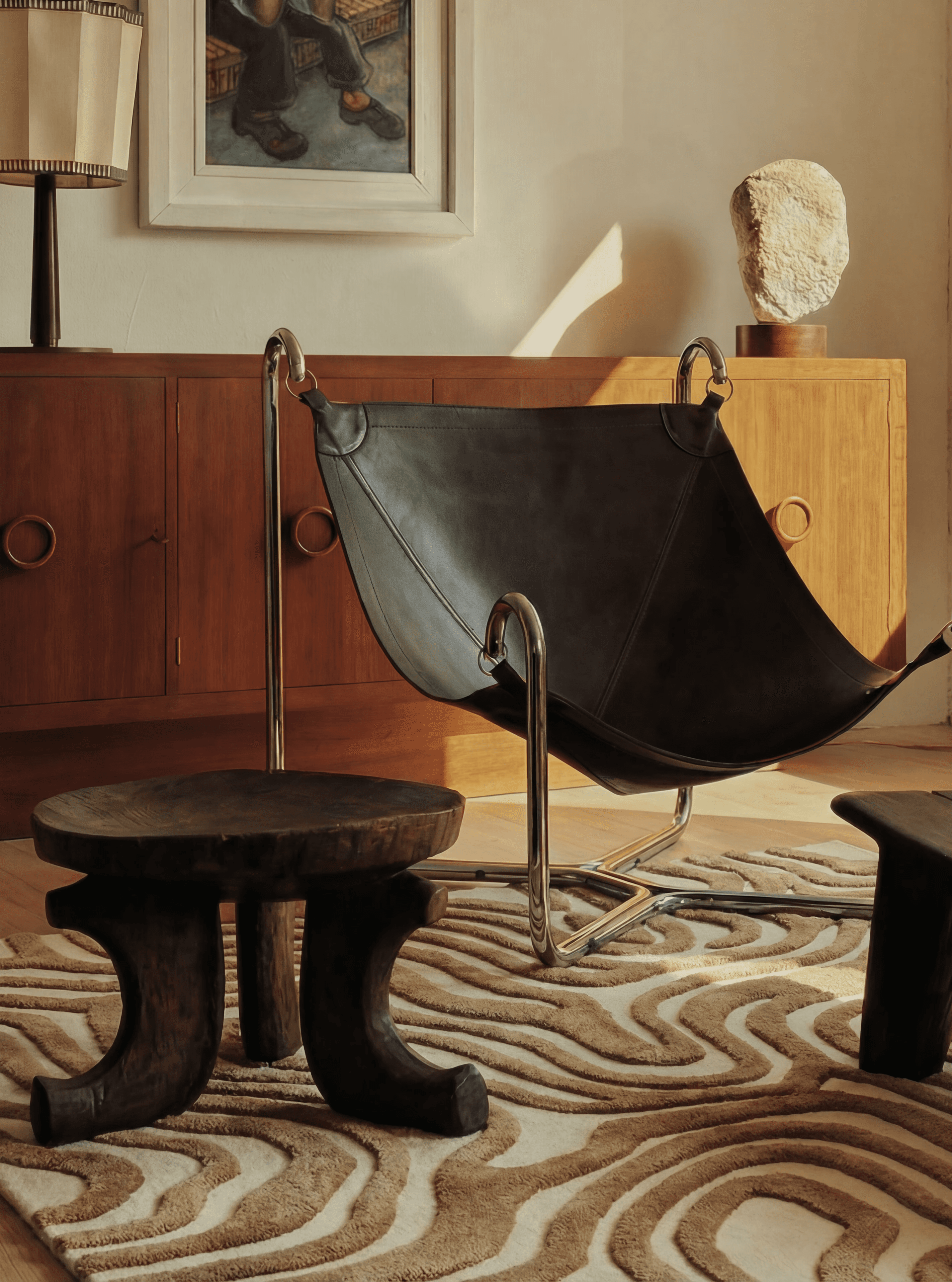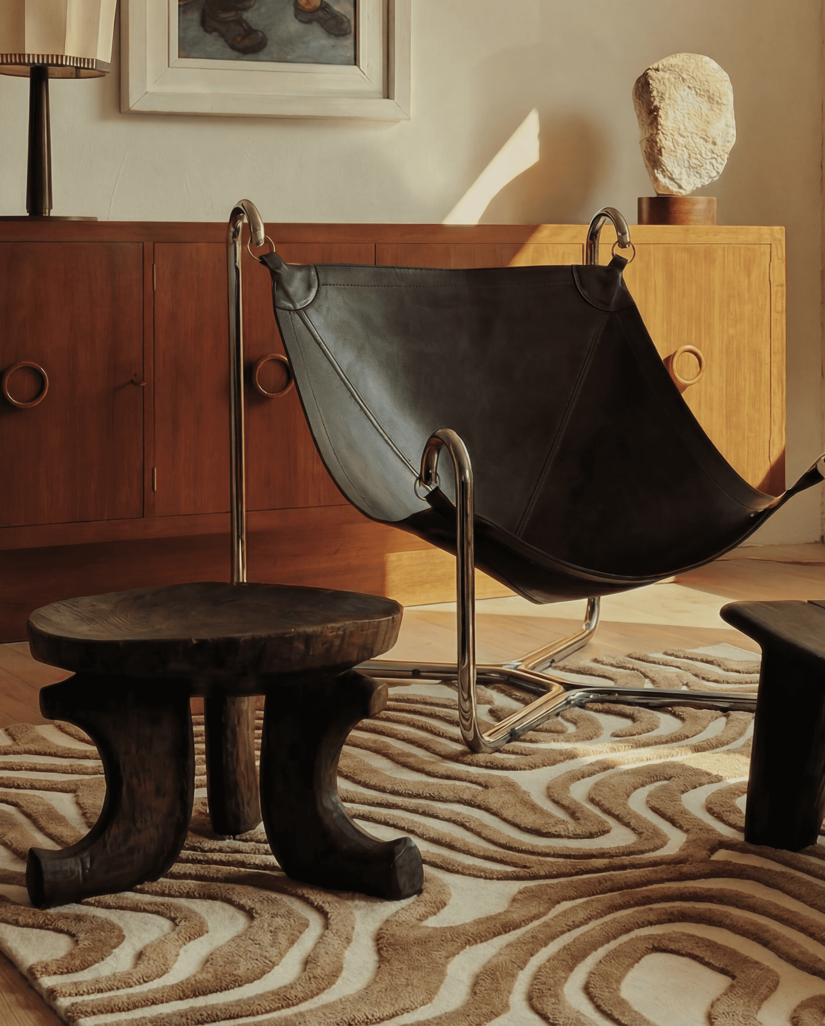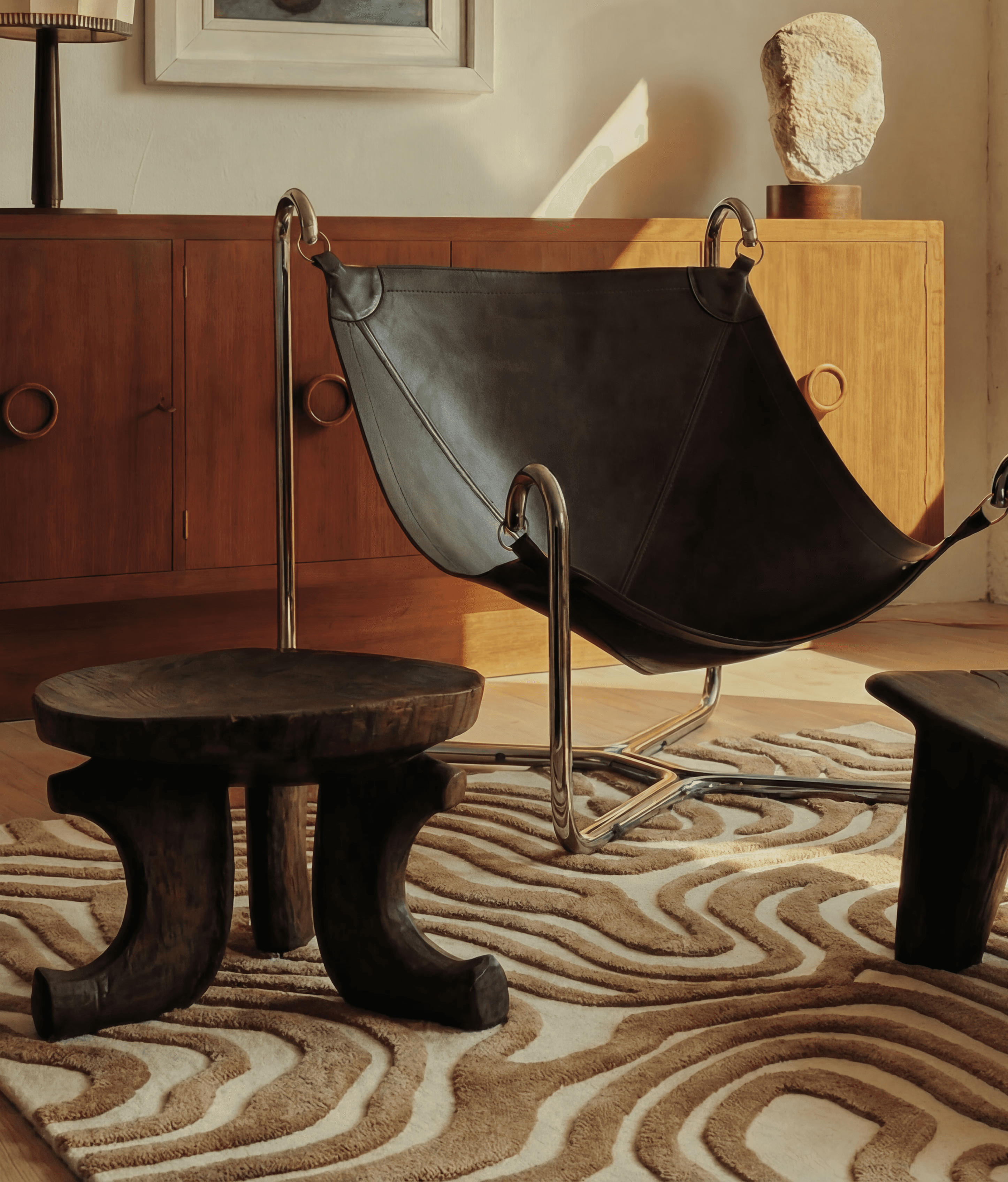 With subtle encarved detailing, the design gains an extra layer of dimension and light play, enhancing its graphic character in a sophisticated way.