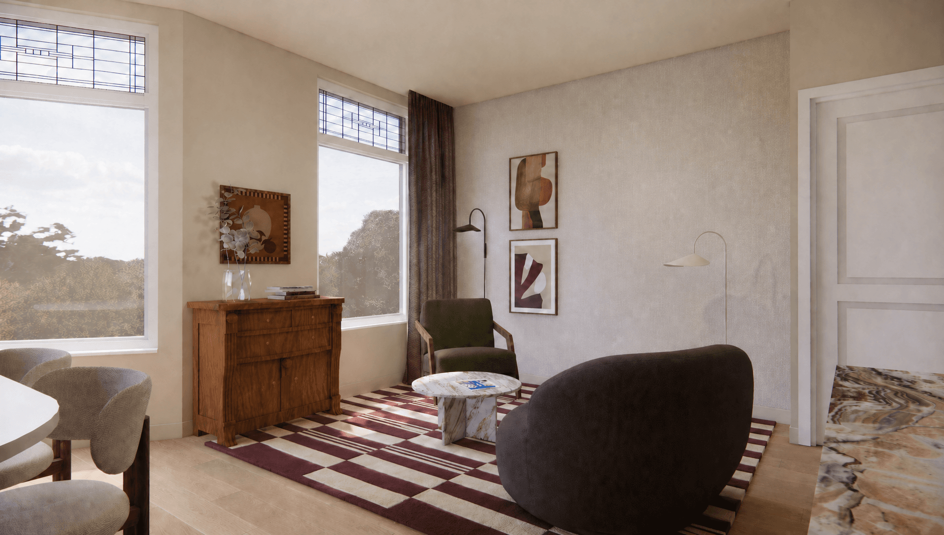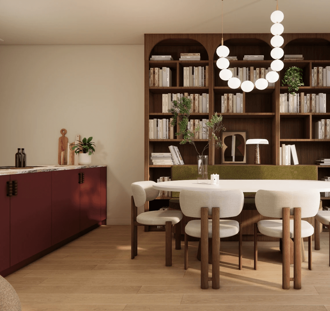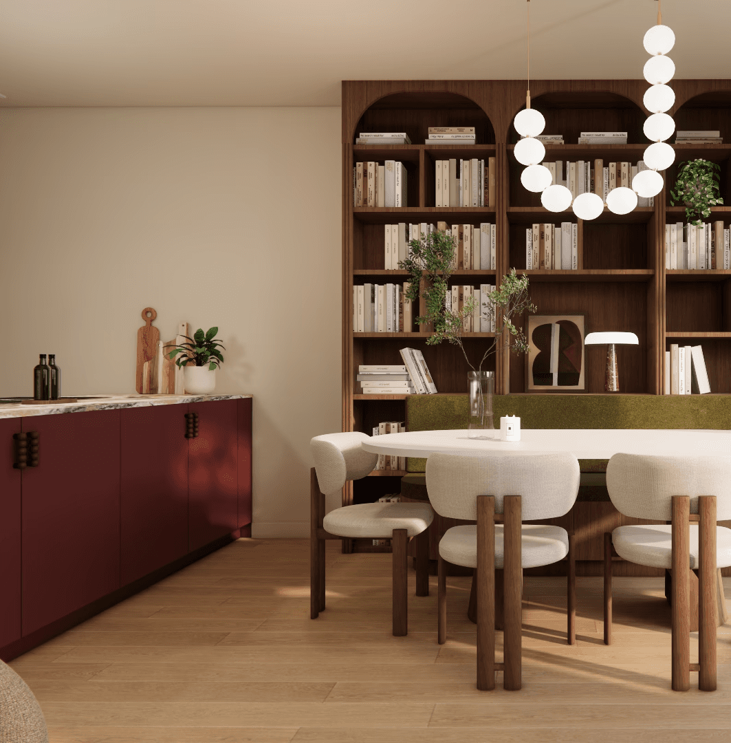 A warm bordeaux-red rug paired with a fresh linen tone in a refined checkered pattern. Explore the materials, craftsmanship and bespoke possibilities behind this piece.
