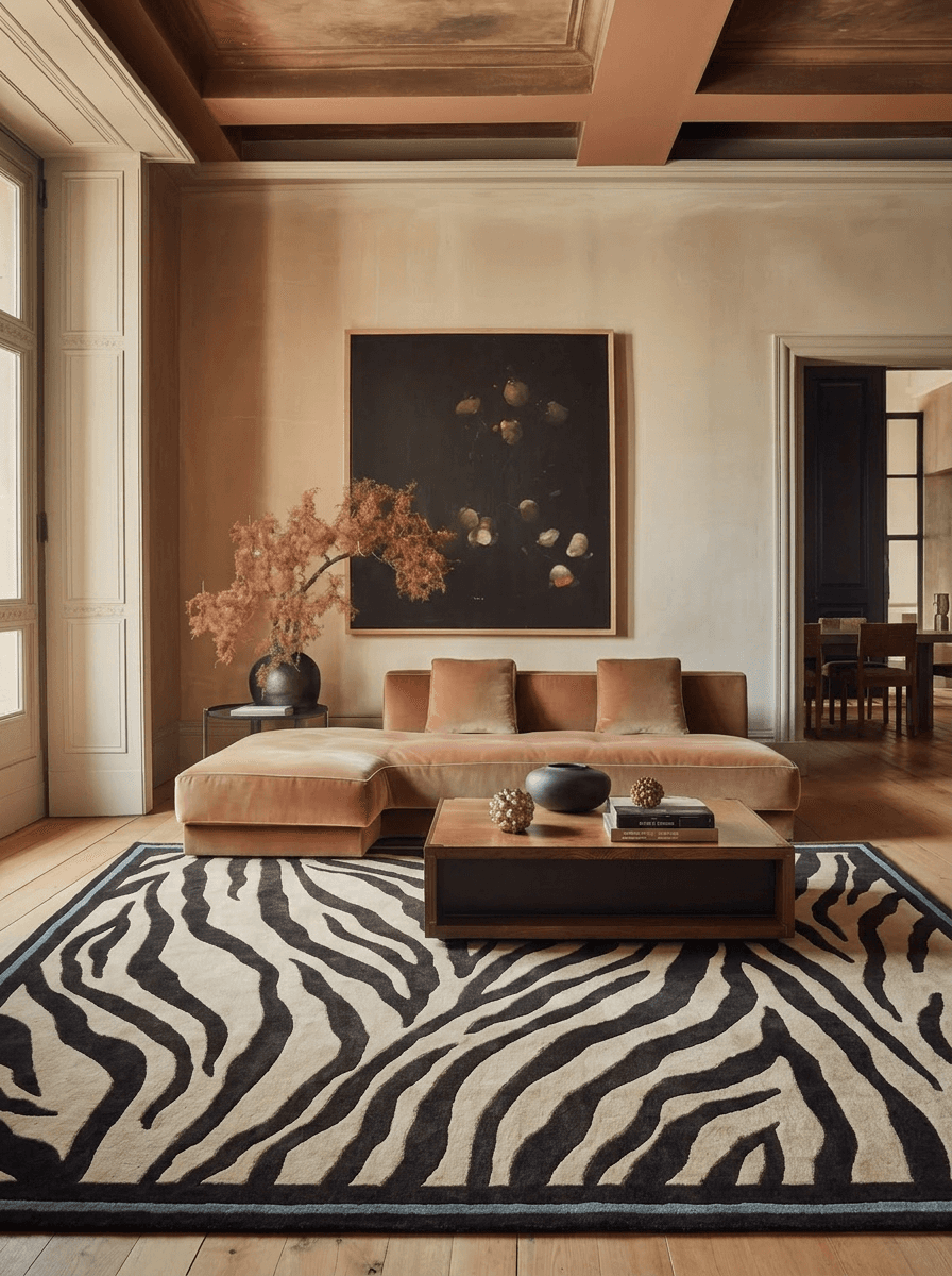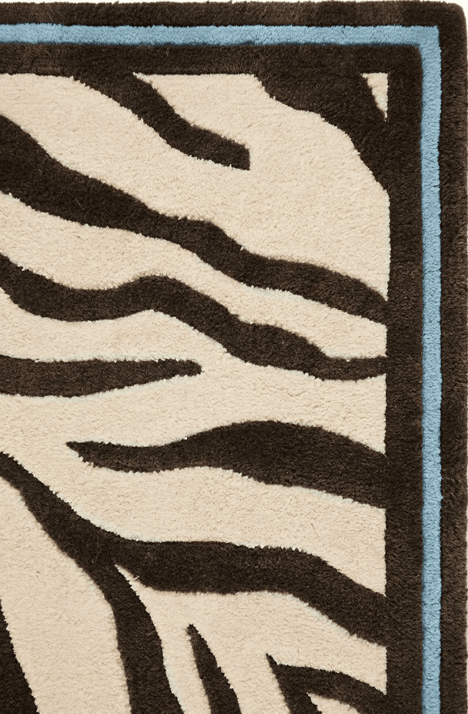 A bold, graphic-zebra inspired pattern with a playful twist, finished with a raised border that subtly frames the rug. Below, you’ll find all specifications, material details, and custom options.